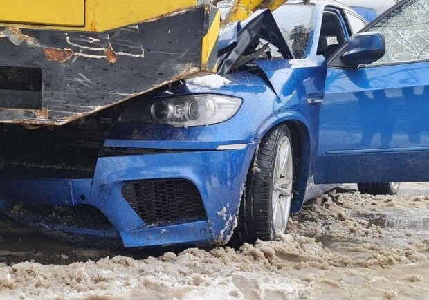 Авария произошла на улице Житомирской. Там водитель автомобиля BMW X5 не справился с управлением и врезался в грузовой кран.