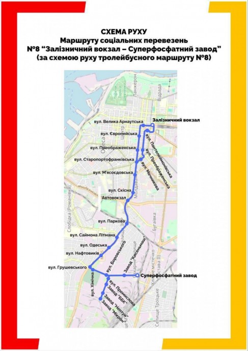 Крім того, в місті продовжують працювати соціальні автобусні маршрути. Зокрема, маршрут «Залізничний вокзал – вул. 28-ї бригади» забезпечує сполучення на період відсутності руху трамваїв №1 та №7 на проспекті Князя Володимира Великого.